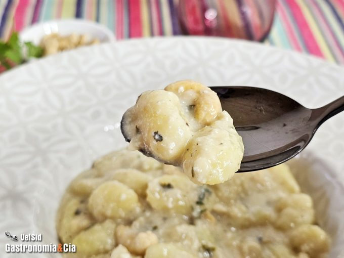 Ñoquis con pera y salsa de queso azul de Valdeón, receta fácil y rápida para hacer un plato exquisito Esta receta de ñoquis con pera y salsa de queso azul de Valdeón os va a parecer exquisita a primera vista, pero os va a conquistar totalmente cuando la probéis, es sabrosa, equilibrada en sabores, combinando el dulzor de la pera con el carácter fuerte y salado del queso azul de Valdeón, un queso español intenso y cremoso, ideal para este tipo de platos. Claro, la combinación de pera y queso azul es un clásico, a menudo lo encontramos en recetas de pasta italiana, pero lo podemos trasladar a muchos otros platos, no os podéis imaginar cómo queda con legumbres… Pero eso, os lo enseñaremos otro día. Hoy queremos que cocinéis en casa este plato de ñoquis con pera y salsa de queso azul de Valdeón o vuestro queso azul favorito, pero QUESEA español. ¡Os esperamos en la cocina! Ingredientes (2 comensales)ElaboraciónPrepara la olla para poner los ñoquis a cocer, llénala de agua, añade sal y lleva a ebullición. Mientras tanto, prepara la salsa. Leer más... |