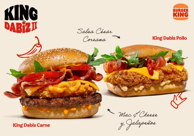 Nuevas hamburguesas King Dabiz II: Carne con Mac&Cheese y Jalapeños, y Pollo con Salsa César Coreana Burger King España ha vuelto a sorprendernos con un lanzamiento exclusivo, las nuevas hamburguesas King Dabiz II: Mac&Cheese con Jalapeños y Pollo con Salsa César Coreana. Estas recetas son fruto de una colaboración renovada entre la cadena de comida rápida y el chef Dabiz Muñoz que, como sabemos, es reconocido por su enfoque creativo y disruptivo en la gastronomía. Tras el éxito de la primera colaboración realizada este verano (hamburguesas King Dabiz Chicken y King Dabiz 100% Angus), donde se llegaron a vender 70.000 hamburguesas en un solo día, Burger King y Dabiz Muñoz han decidido ampliar su alianza. Ahora se presentan dos nuevas hamburguesas que están inspiradas en las cocinas americana y asiática para llevar el contraste de sabores y la fusión culinaria a un nivel superior. La King Dabiz Pollo con Salsa César Coreana se presenta como una experiencia gustativa única, elaborada con pan brioche, salsa César coreana, rúcula, salsa de mojo rojo, bacon, queso cheddar madurado y el característico pollo supercrujiente Premium de la cadena. La King Dabiz Carne con Mac&Cheese y Jalapeños se promociona como una hamburguesa ideal para los amantes de sabores intensos, lleva pan de maíz, crema cheddar con jalapeños, cebolla crispy, rúcula, tomate, salsa de jalapeños, bacon, queso cheddar madurado, Mac&Cheese y la clásica carne Whopper. Leer más... |